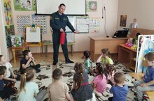 Сегодня у нас в гостях был начальник отдельного поста по охраны п. Лесхоз ППС РТ Мингазов Р.Ш. Он провёл небольшую беседу, с удовольствием ответил на интересующие детей вопросы. Мингазов Р.Ш. рассказал детям о причинах возникновения пожара, его последствиях, а также повторили основные правила пожарной безопасности: