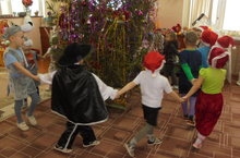 Бездә бүген дә бәйрәм дәвам итә. Балалар белән чыршы тирәли әйлән-бәйлән уйнадык, уеннар уйнадык.