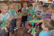 Яраткан әниләребезгә бәйрәм бүләге итеп нәни кулларыбыз белән чәчәкләр ясадык.