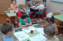 Рәсем эшчәнлегендә балалар белән ак битләргә кара тушь, коктейль таякчыклары ярдәмендә өреп, кышкы урманны күзаллап ялангач агач ботаклары, куаклар ясадык.