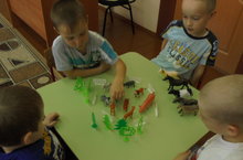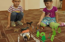 Математика эшчәнлегендә мәктәпкәчә яшьтәге балалар белән 7-8 саннарын кабатладык һәм 9 саны белән таныштык. Йорт хайваннары арасыннан кыргый җәнлекләрне аерып зоопарк төзедек.