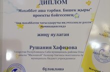 Тәрбияче Хафизова Р.Х. проект кысаларында "Ана мәхәббәтен чагылдыручы иң эчтәлекле рәсем" номинациясендә җиңүче дипломына лаек булды.