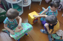 Без рәхәтләнеп "Гаилә" уенын уйныйбыз. Барыбызга да эш табылган. Кызлары Инзилә кер үтүкли, әнисе Әдилә кер юа, ә әтиләре Айдар булышып тора.