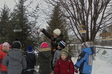 Чыршы, каен, миләш агачларына җимлекләрне элеп куйдык. Аларга көнбагыш, ипи валчыклары салып куйдык. Кошкайлар, килегез, рәхәтләнеп безнең сыйдан авыз итегез.