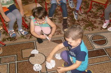 Кечкенәләр белән кисеп ябыштыру эшчәнлегендә миләш тәлгәше кисеп ябыштырдык..