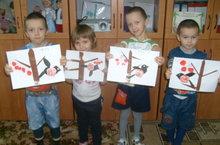 Балалар белән кисеп ябыштыру эшчәнлегендә кыш, кышлаучы кошлар, аларның кышны ничек каршылаулары хакында сөйләштек һәм үзләренең фантазияләрен файдаланып кызыл түшне кисеп ябыштырдык.