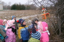 Бүген балалар белән агачка җимлек элдек.Табышмаклар аша балалар кышлаучы кошлар белән таныштылар. Кошларга бик күп кирәкми, кемдер җим, кемдер икмәк валчыгы алып килергә , дип балалар белән сөйләштек. Күпме кошны ачлыктан коткарып калып була. Менә шулай ярдәм иткәндә генә, безнең нәни дусларыбыз исән кала. һәр кош үзенең көченнән килгәнчә урман һәм авыл хуҗалыгы өчен бик зур файда китерә, корткычлардан, пычранудан саклый. Матур сайраулары белән күңелебезне күтәрә. Шуңа күрә һәрберебез аларга ярдәм итик. Аларны саклыйк. -