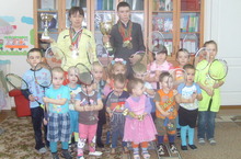 "Сәламәт балалар-сәламәт гаиләдә!" акциясе кысаларында уздырыла торган чараларда безнең бакча коллективы да читтә калмады. Без бүген бакчабызга кунакка Зарипова Гөлнара Хәмит кызын һәм аның 9-чы сыйныфта укучы улы Илфатны чакырдык. Гөлнара Хамитовна һәм Илфат - район, республика күләмендә бик күп тапкырлар бадминтон ярышларында катнашып, алдынгы урыннарны алып кубоклар һәм медальләргә ия булган кешеләр. Гөлнара Хамитовна Завод Нырты урта мәктәбендә физик тәрбия укыта, волейбол һәм бадминтон түгәрәкләрен алып бара. Безнең бакчада тәрбияләнгән балалар: Хаҗиева Язгөл, Латипов Данис, Миннегалиев Илшат, Валиева Гөлфия, Низамиева Зөһрә, Фархиева Зәлинә Гөлнара апалары җитәкчелегендә шөгыльләнеп, матур күрсәткечләргә ирешеп, Россия күләмендә уза торган ярышларда да катнашалар. "Нинди генә спорт төре белән шөгыльләнсәң дә, уңышларга ирешү өчен иң беренче чиратта түзем булырга, спортны яратырга, бик күп шөгыльләнергә, дөрес итеп тукланырга"- кирәк дип аңлатты Гөлнара Хамитовна.