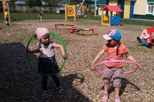 Балалар белән саф һавада төрле уеннар уйныйбыз, кыршау әйләндерергә өйрәнәбез.