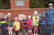 Бүген балалар белән Җиңү көненә багышланган митингта катнаштык һәм якташыбыз Иван Сергеевич Башкировны искә алып чәчәкләр куйдык.