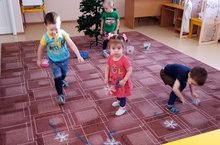 Кечкенәләр белән "Кем күбрәк кар бөртеге җыя" дигән уен уйнадык.