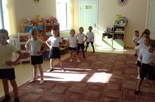 Физкультура эшчәнлегендә туплар белән төрле күнегүләр ясыйбыз.