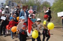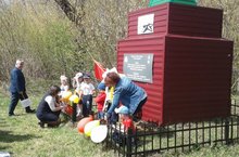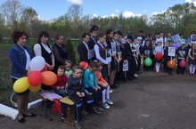 Балалар белән сугышта һәлак булган бабайларыбызны искә алып обелиска шарлар элдек. Һәм бер минут тынлык игълан ителде.