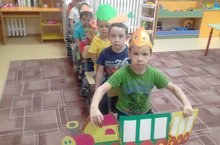Рус теле эшчәнлегендә "Приключение овощей" дигән уен уйнадык. Яшелчәләрне төсләре буенча вагоннарга урнаштырдык.