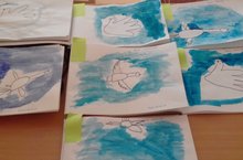 Балалар белән "Казлар -аккошлар" әкиятенә таянып рәсем ясадык.