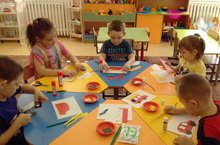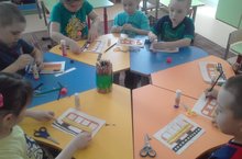 Юл йөрү кагыйдәләрен өйрәнү максатыннан балалар белән кисеп ябыштыру эшчәнлегендә шәһәр транспорты трамвай ясадык. Квадрат һәм турыпочмаклык почмакларын түгәрәкләп кисү, тар кәгазь тасмалар кисеп алу күнекмәләрен ныгыттык.