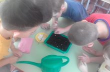 Балалар белән мини-парникка кыяр орлыкларын утырттык. Балалар белән туфракның ниндилеген һәм су сипкәч туфрак нишләвен күзәттек.