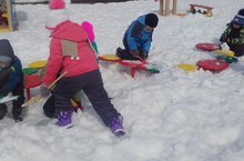 Саф һавага чыккач кечкенә көрәкләребезне алып уен мәйданчыгыбызны кардан чистарттык.