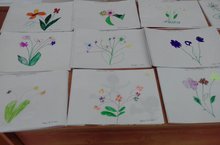 Балаларда әниләргә карата ихтирам, ярату тәрбияләү, рәсем ясау күнекмәләрен үстерү максатыннан балалар белән чәчәк бәйләмен ак битләргә ясадык.