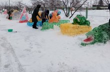 Ишек алдыбызны бизәдек.Кар сыннары ясадык. 19.12.2022