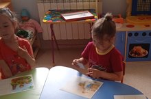 Рәсемнәр,уеннар аша һөнәр ияләре белән танышуны дәвам итәбез. "Кем булырга телисең?",- дигән тема астында балалар хикәя төзеп сөйләделәр.