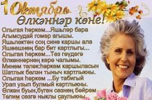 Хөрмәтле Өлкән тәрбиячеләребез! Ихлас күңелдән өлкәннәр көне белән котлыйбыз.Булган сәламәтлегегездән аермый,балалар, оныклар бәхет-куанычы күреп,якыннарыгыз янәшәсендә, һәр көннең ямен-тәмен тоеп, кадер-хөрмәттә, кайгы-хәсрәт күрми, бәрәкәтле, мул тормышта яшәргә насыйп булсын!!!