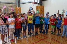 Икенче аштан соң спорт залында төрле ярышлар узды. Бүләкләр дә шәп! Кәрзингә оста туп кертүчеләр иң зур бүләккә, тупка лаек булды. Азалия белән Рәдискә елмайды бу бәхет. Һәр уенда кемдер җиңүче, кемдер бераз гына калышты. Кыршау әйләндерү, скакалка сикерү, гәүдә күтәрү, турникта тартылу һ.б,һ.б. Кыскасы, берәү дә бүләксез калмады бүген. Кәеф шәп,йөзләрдә елмаю!