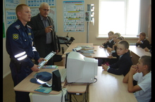 Буген башлангыч сйныф укучылары районнын ЮХИДИ хезмэткэре Насибуллин Ильнур белэн очраштылар. Балаларга юл йору кагыйдэлэре искэ тошерелде, юлда йору кагыйдэлэренэ карата топ законнар каралды. Инспекторнын 1 нче сыйныф укучларына булэклэре дэ бар иде.