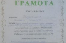23 марта на базе МБОУ ''Сабинская Гимназия'' состоялся ''Фестиваль методических идей молодых педагогов'' Сабинского района. В конкурсе нашу школу представили Алина Николаевна и Салават Саматович. Педагоги показали отличную подготовку и педагогическое мастерство в рамках своего выступления. Габдрахманова С.С. поздравляем с победой и желаем всем молодым учителям нашей школы дальнейших успехов!