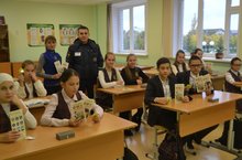 В конце встречи ребятам подарили светоотражатели и тематические буклеты. -