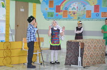 Ученики 1 класса выступили с сценками “TheTurnip” и “TheBun”, в конце выступления исполнили песню “Hello”; ученики 2 класса рассказали стихи на осеннюю тематику и спели песню “This is the way”; 3 класс - стихи “Count to eleven”, The little girl” испелипесню“Say, Hello”; ученики 4 класса поставили сценку “Thethreelittlepigs”.