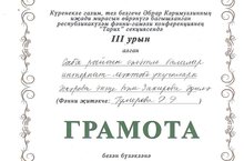 24 марта 2017 года, с целью развития интеллектуального творчества школьников, привлечения их к исследовательской работе в Сабинском муниципальном районе Республики Татарстан состоялась IV Республиканская научно – практическая конференция школьников имени Абрара Каримуллина. Аскарова Эндже и Закирова Адиля, учащиеся 10 класса представили свою исследовательскую работу на секции: «История» и заняли 3 место (учитель Гумерова Р.Р.)