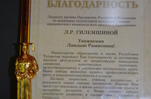24 декабря в Казани в учебно-лабораторном корпусе Поволжской академии физкультуры, спорта и туризма в торжественной обстановке чествовали талантливую татарстанскую молодежь – победителей и призеров международных, всероссийских и региональных олимпиад и конкурсов, а также педагогов, подготовивших их. Среди них были и учащиеся и учителя Школы для одаренных детей: Галимова Ильсина Ильсуровна, Газизова Гульназира Ильгизовна, Гилемшина Ландыш Рамисовна, учитель татарского языка и литературы Галимзянова Сания Вагизовна, учитель технологии Валеева Резида Рахматулловна, учитель математики Маннанова Резида Адгамовна.