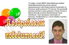 18- 19 ноября на базе МБОУ «Кильдебякская средняя общеобразовательная школа» прошел муниципальный этап Всероссийской олимпиады по английскому языку среди учащихся 7-11 классов. На олимпиаде приняли участие и наши учащиеся. Ученица 8 класса Габтерахманова Камилла - учитель Арсланова Наиля Лириковна- стала победителем олимпиады по английскому языку. Поздравляем их с этой победой и желаем дальнейших успехов!