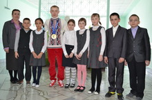 Мәктәбебедә зур яңалык! Паралимпиада - 2014 уеннарында алтын медаль алган Рушан Миннегулов бездә кунакта. Башлангыч сыйныф укытучысы – Котдусова Сания Шаймиевна, 5 нче сыйныфка кабул итеп алган – Билалова Ләйсән Ракиповна да аның турында булган хәлләрне, кызыклы, шатлыклы вакыйгаларны искә алып, укучылар белән дә уртаклаштылар. Укучылар үзләрен кызыксындырган сорауларына җаваплар алдылар. Соңыннан һәр сыйныф “чемпион” белән фотога төшеп, автограф алып, алдагы көннәрендә уңышлар теләп, озатып калдык.