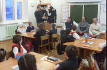 Укучылар белән очрашуга килгән Фаттахов Илвир, Зиннуров Рамил һәм Шарафиев Айдар абыйлар үзләренең армия тормышларын искә төшереп сөйләделәр, укучыларның сорауларына җавап бирделәр, булачак солдатларга – малайларга үз теләкләрен җиткереп, файдалы киңәшләрен бирделәр. Фаттахов Илвир абый мәктәбебезнең музеена диңгез флоты киемнәрен бүләк итте. Соңыннан Хисамиев Фидаил абый гитарада уйнап җырлады, бәйрәм белән котлады. Укучылар да җавапсыз калмады, иң матур теләкләрен шигъри юллар аша җиткерделәр. -
