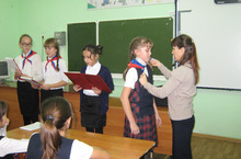 29 октября в нашей школе среди пятых классов состоялся торжественный сбор, посвященное приему в Пионеры-Наследники. Ведущие – Галимуллина Алина и Насыбуллина Эндже из 7-го класса рассказали об истории возникновения детской организации «Союз наследников Татарстана». Главная идея СНТ – содействие саморазвитию, гражданскому самоопределению участников через приобщение к культурно-историческим традициям родного края и Отечества. Была исполнена песня «Мин варисын синен, Татарстан», было рассказано о том, кто такие наследники. Самым кульминационным моментом стало чтение Торжественного обещания и вручение галстука. В конце мероприятия заведующая отдела по развитию детских общественных организаций – Вафина Эльвира Раисовна поздравила всех пятиклассников с праздником и пожелала дальнейших успехов в жизни и учебе.