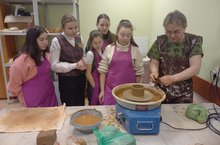 Ученики 7 класса нашей школы побывали на мастер-классе по гончарному делу. Мастер-класс состоял из небольшой теоретической части, во время которой участники познакомились со свойствами глины, узнали типы и виды глины, разницу между ними, познакомились с инструментами для работы на гончарном круге. В процессе мастер-класса познакомились с основными способами формовки глины при помощи гончарного круга, затем ученики сами попробовали изготовить поделку из глины. -