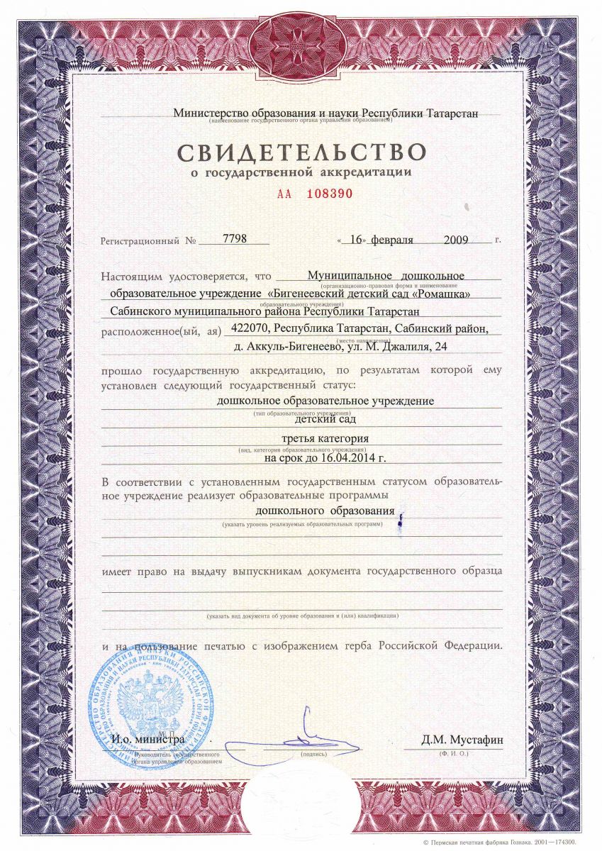 Свидетельство о государственной аккредитации