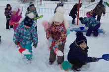 Ә уртанчылар төркеме балалары урамда битләре кызарганчы уйныйлар.Төрле һөнәрләргә өйрәнәләр: кар да көриләр, кардан төрле "тәмле мәмиләр"дә пешереп уйныйлар.(Тәрбияче Гилемханова Ә.Ә.)