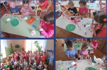 Бүген рәсемне бөтен кәгазь битендә ясау сәләтен үстерү, традицион булмаган алым - бармак белән рәсем ясау сәләтен арттыру максатыннан 2 кечкенәләр төркемендә "Тәлинкәдә җиләкләр" темасына рәсемләү эшчәнлеге уздырылды. Әлеге эшчәнлектә балалар кунакка килгән чыпчыкның биремен үтәделәр, ял минутында күңелле музыкага биеп алдылар. тырышып рәсем ясадылар. (Сафиуллина Ә.К.)