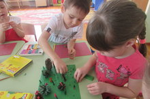 Урман җиребез матурлыгы, байлыгы 19.04.2017 Балаларда урманга һәм аның байлыкларына сак караш тәрбияләү; кешеләр тарафыннан табигатьне сакларга кирәклеге турында нәтиҗә чыгара белү, логик фикер йөртә белү сәләтен үстерү; урман андагы тереклек турындагы белемнәрен тирәнәйтү, мул табигатьнең кеше тормышына әһәмиятен аңлату; сирәк калган һәм югалып бара торган хайваннар, үсемлекләр турындагы китап белән таныштыру, аның әһәмиятен аңлату. Кызыл китапка кертелгән хайван һәм үсемлекләрне кызгану, алар өчен борчылу хисләре уяту, сирәк калган һәм югалып бара торган,җәнлекләр, үсемлекләр турындагы китап белән таныштыру аның әһәмиятен аңлату. Балаларда игътибарлылык сыйфатлары, экологик культура тәрбияләү, тәбигатьтәге үзара мөнәсәбәтләрне күрә белү сәләтен үстерү. Татарстан җирелегендә үсә торган урман үсемлекләре турында белемнәрен камилләштерү максатыннан 17 – 21 апрель көннәрендә “Урман – җиребезнең матурлыгы, байлыгы” атнасы үткәрелә. Зурлар төркеме балалары Ләйлә Исмагиловна белән берлектә "Урман" темасына конструкцияләү эшчәнлегендә нарат күркәләрен буяп урман ясадылар.