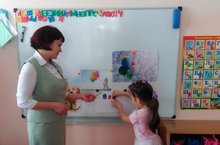 Тәрбияче Ахметсафина Ләйсән Хазиевна балаларны сүздән аерым авазны интонация белән аерып алып әйтергә күнектерү, калын (кырыс) һәм нечкә (ягымлы) әйтелә торган тартык авазларны ишетү һәм аларны аера белү күнекмәсен булдыру. Хикәяне истә калдырып сөйләүләренә ирешү, сорауларга тулы җавап бирергә күнектерү максатыннан "Тылсымлы авазлар" исеме астында бердәм белем бирү эшчәнлеген күрсәтте.