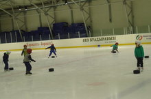 Воспитанники подготовительной к школе группы с удовольствием посещают кружок "Юные хоккеисты" спортивного комплекса "Нарат" поселка Лесхоз.