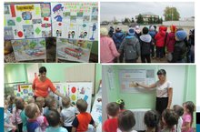 В рамках недели безопасности по профилактике детского дорожно-транспортного травматизма в нашем дошкольном учреждении были организованы экскурсии и целевые прогулки. Дети второй младшей группы наблюдали за движением транспорта и пешеходов по улице Школьная, определяли виды транспорта. Дети средней, старшей, подготовительной к школе групп на пресечении улиц Школьная и М.Джалиля наблюдали за движением на перекрестке. По темам "Что такое транспорт?» , «Виды транспорта», «Строгий светофор», «Безопасная дорога», «Безопасность детей на дорогах», «Мы - за мир на дорогах» был организован конкурс стенгазет. Был оформлен паспорт маршрута движения детей МБДОУ Сабинский детский сад №1. Провели разъяснительную работу среди родителей, детей, сотрудников детского сада по безопасному движению детей из детского сада в бассейн, в библиотеку, в школу.