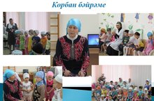 Корбан ашы 14.09.2016 Бүген бакчабызда Корбан бәйрәме уңаеннан зур чара үткәрелде. Балалар, хезмәткәрләр залга җыелдылар һәм Дания Әминовна җитәкчелегендә елларыбызның тыныч-имин булуына, һәркемгә исәнлек, саулык, бәхет, шатлык, куанычлар, иман байлыгы теләп дога кылдылар. Дания Әминовна шушы изге бәйрәмне үткәрү турында сөйләде, балаларның белгән догаларын тыңлап Дания Әминовна балаларга үгет-нәсихәт бирде, итәгатьле, мәрхәмәтле, шәфкатьле,ярдәмчел булып үсегез, - дигән теләкләрен җиткерде. Төшке аш вакытында балалар махсус корбан итеннән әзерләнгән ризыктан авыз иттеләр.