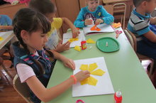 Балаларның ел фасыллары турында белемнәрен киңәйтү: көзнең характерлы үзенчәлекләре; табигатьтәге үзгәрешләр, ел фасыллары, ай исемнәре турында белемнәрен ныгыту; табигатьтәге үзгәрешләргә үсемлекләр, җәнлекләр ничек җайлашуы, андагы күренешләргә карата гомуми караш формалаштыру; кыргый һәм йорт хайваннарының тормышы, кошлар тормышы, кешеләрнең эшчәнлеге; тере булмаган табигатьтә күзаллауларны киңәйтү максатыннан 12-16 сентябрь көннәрендә бакчабызда "Исәнме, Алтын көзґ!" атналыгы үткәрелде. Балалар көндәлек тормышта табигатне күзәтүдә, тирә-юнь телән танышу эшчәнлекләрендә алган белемнәрен сынлы-сәнгать өлкәсендә киң чагылдыралар. Бүген мәктәпкә әзерлек төркеме балалары тәрбияче Венера Әгълиевна белән берлектә өрәнге яфрагын оригами ысулы белән эшләделәр.