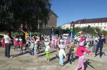 Спорт белән -без дус! 12.07.2016 Балаларның көн дәвамында хәрәкәт активлыгын үстерү,сәламәт булып үсүләрен тәэмин итү буенча бакчабызда күп төрле эш: иртәңге гимнастика, физкультура эшчәнлеге, хәрәкәтле уеннар, ярышлар, спорт бәйрәмнәре аша алып барыла. Физик тәрбия бирү җитәкчесе Нурания Әюповна төркемнәрдә спорт ярышлары уздыра. Балалар үзара җитезлектә, өлгерлектә, уңганлыкта ярышалар, көч сынашалар. Ярышлар барышында балаларны бер-берсен кайгыртып, иптәшләренә көч биреп, команда белән эш итә белергә күнектерелде. Сәламәт булып үсәр өчен кече яшьтән спорт белән шөгыльләнергә кирәклеге аңлатылды.