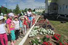 Бакчабыз биләмәсен матурлау, ямьләндерү, бизәү буенча күп кенә эш алып барыла.Яз җитү белән хезмәткәрләребез һәм әти-әниләр тырышлыгында күп төрле,берсеннән-берсе матур гөлләр утыртылды. Җәйнең җылы, яңгырлы булуы чәчәкләргә хуш килде, тирә-юнь аллы-гөлле төсләргә күмелде. Табигать биргән матурлыкны күрә, тоя белергә өйрәтү,чәчәкләрне таный һәм аера белергә күнектерү максатыннан балалар белән даими күзәтүләр оештырыла. Чәчәкләрнең төсләренә, таҗ, яфракларының формаларына, төзелешенә игътибар ителә; аларны чагыштырып карау ысулы аша охшашлыкларын, аермалыкларын күрә белергә; таный һәм аера белү өстендә эш алып барыла. Өлкәннәр хезмәтенә хөрмәт, чәчәкләргә карата сакчыл караш тәрбияләнә. Зурлар төркеме балалары тәрбияче Ахметсафина Ләйсән Хазиевна белән берлектә "Чәчәкләргә күмелгән - гөлбакча" темасына әңгәмә вакытында сокландыргыч гүзәл чәчәкләрнең кешеләргә, аларның сәламәтлекләренә уңай йогыты ясавын аңлатты. Шушы матурлыкны саклый белергә кирәклеген төшендерде.
