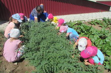 “Нәрсәгә өйрәнсәң, шуны куарсың” 13.07.2016 Намуслык, хезмәт сөючәнлек, кешеләргә мәрхәмәт, хөрмәт, шәфкатьлелек, Туган җиргә мәхәббәт сыйфатлары балага геннар белән генә дә күчми. Моңа билгеле бер максатлы тәрбия эше нәтиҗәсендә генә ирешелә.Татар халкының “Нәрсәгә өйрәнсәң, шуны куарсың” дигән макәле бар. Кечкенәдән үк кешене файдалы эшкә күнектерергә кирәк. Шушы хезмәт тәрбиясен истә тотып без уртанчы төркем балалары, тәрбияче Гөлгенә Тәлгатовна белән, үзләре утырткан борчак түтәлләреннән чүп утадылар һәм аларга су сиптеләр. Бакчабызда быел да яшелчәләрнең уңышы мул булыр. Бердәм башланган,күмәк эшнең нәтиҗәсе дә озак көттермәс.